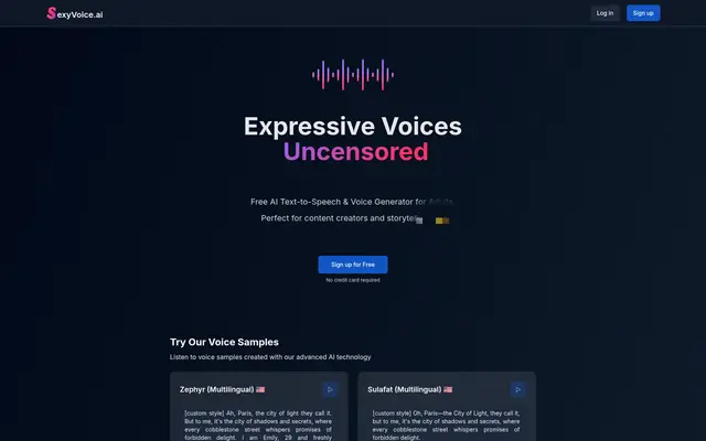 3★ 3.5Community voice models with API access. The open marketplace for NSFW TTS.